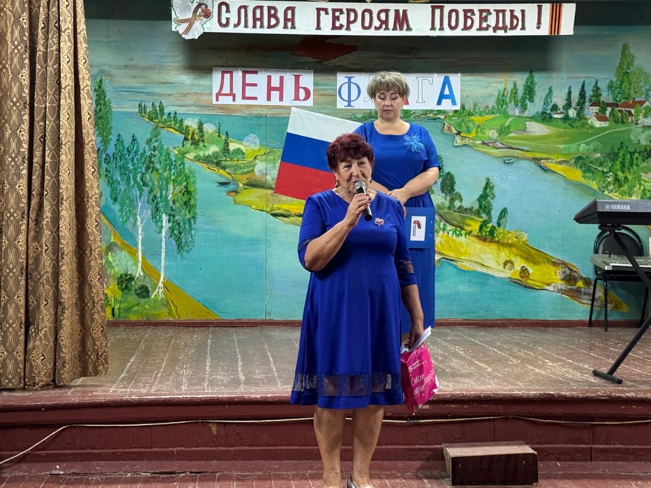 Мероприятие объединило два события: празднование Дня Государственного флага Российской Федерации и чествование юбиляра и ветерана труда п. Хмелевский Л.П. Дейко, у которой день рождения совпало с праздником.