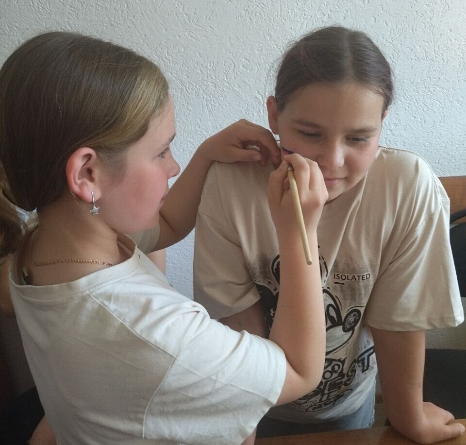 Они попробовали себя в новом творческом направлении. С помощью кисточек нанесли на лицо аквагрим в цветах флага РФ, выразив этим любовь к Родине.