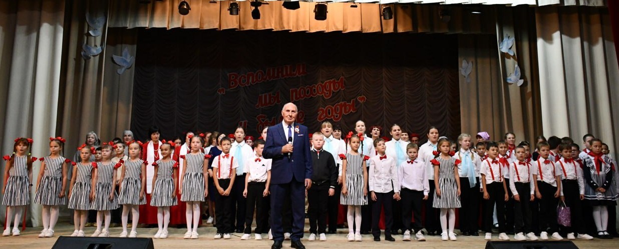 Концерт завершился знаковой песней «День Победы». В общем хоре звучали голоса не только коллектива Детской школы искусств, но и главы ветеранов района Владимира Перкова, а также многочисленных зрителей.