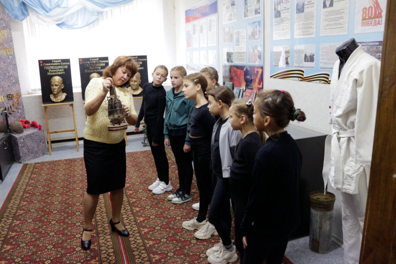Они с интересом рассматривали новые экспонаты: реликвии времён ВОВ: оружейные гильзы, найденные на поисковых раскопках; новые стенды с информацией о земляках, погибших в ходе СВО; личные вещи земляка Героя России А.И. Потапова; трофейные шевроны, привезённые «из-за ленточки»; колбу с посланием потомкам и вышитую карту Шиханского городского округа.