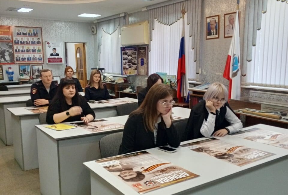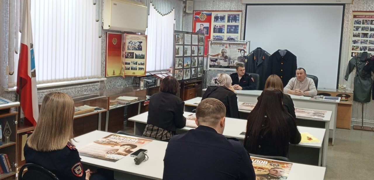 Урок мужества для молодых сотрудников полиции и студентов 4 курса СГЮА провели председатель Совета ветеранов органов внутренних дел, полковник внутренней службы в отставке Сергей Николаев и начальник отдела по работе с личным составом УМВД России по г. Саратову подполковник полиции Александр Сотников.