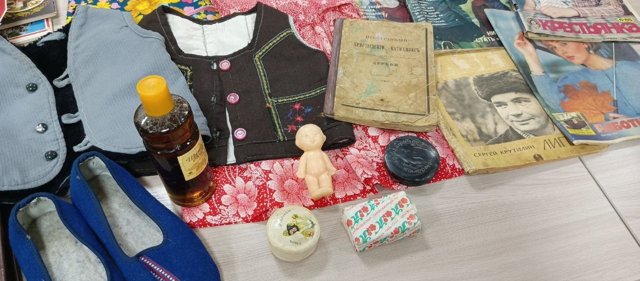 Среди них были Тюркин Андрей, Миронов Владимир, Кобелева Ирина, Шмидт Анна и Помогаев Сергей, которые сейчас участвуют в специальной военной операции. Они передали в музей более 30 экспонатов. В основном это предметы быта, созданные в 60–70-х годах прошлого века, и книга, изданная в 1913 году.