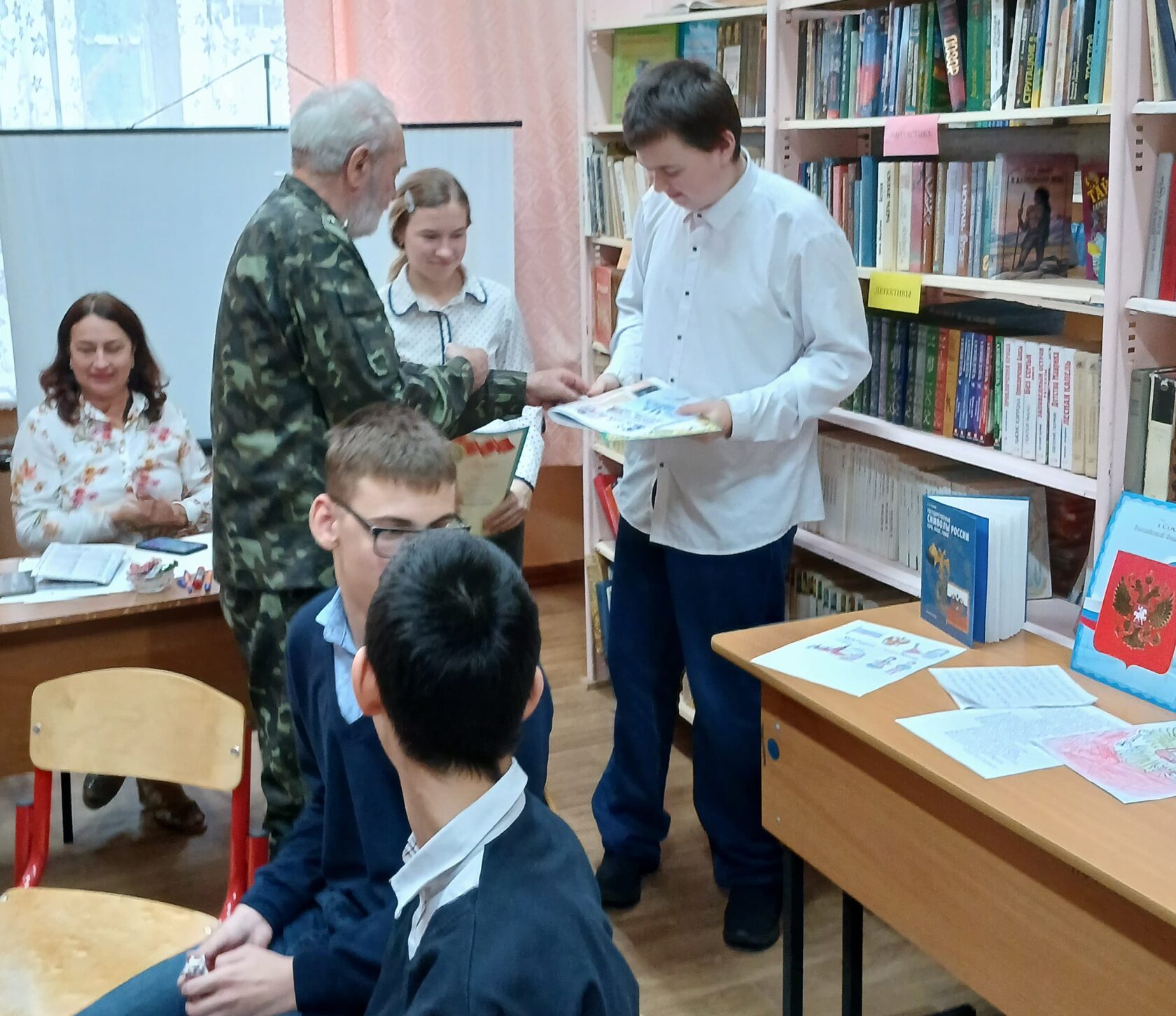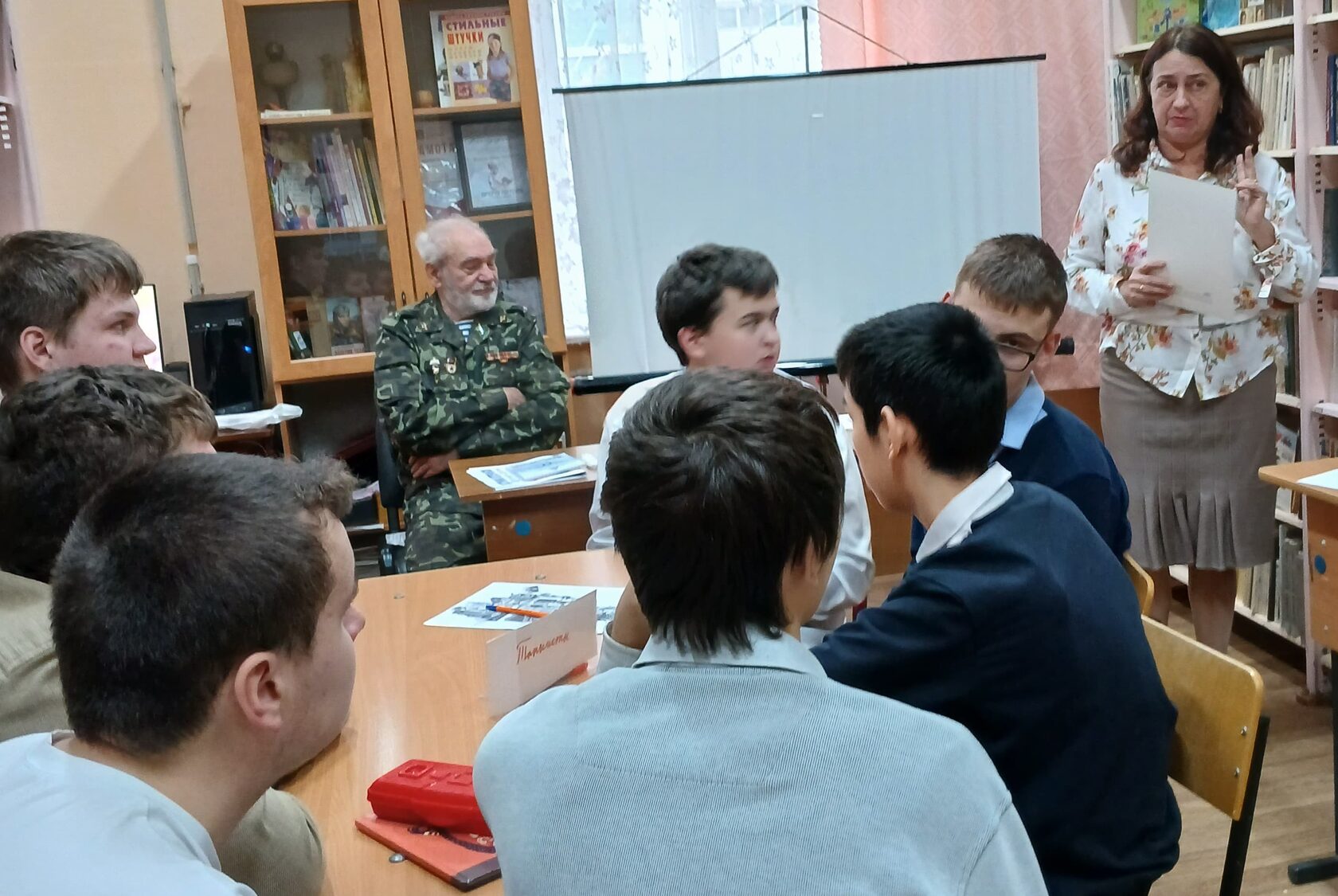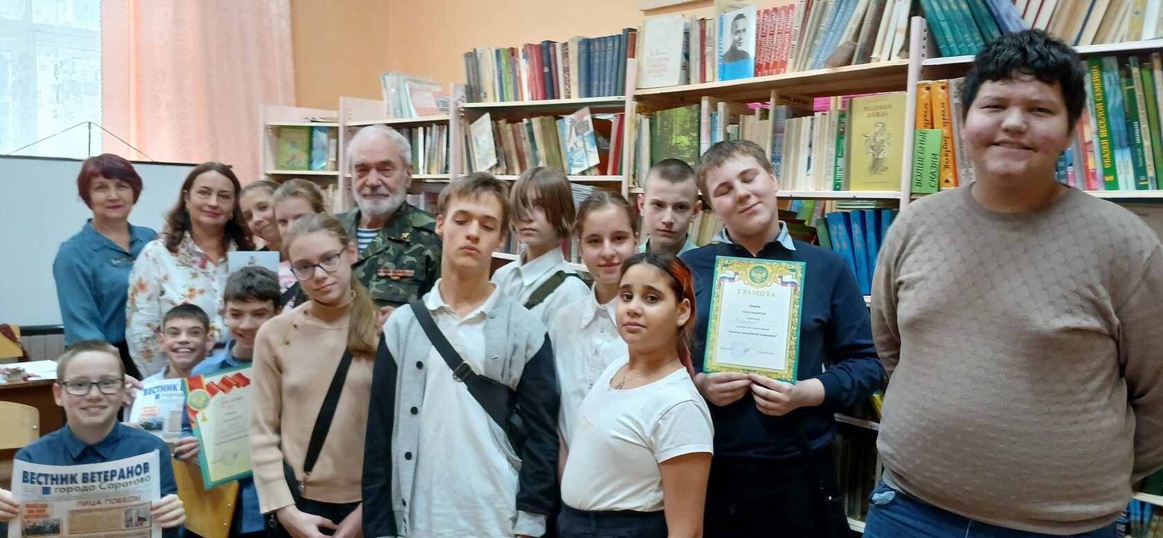 Викторину с воспитанниками 5–9 классов школы-интерната АОП №4 г. Саратова провёл член бюро Совета Саратовской областной организации ветеранов, председатель комитета войн и военной службы, кавалер двух орденов «Красная Звезда», ветеран войны в Афганистане, десантник-разведчик, подполковник в отставке Виктор Перетокин.