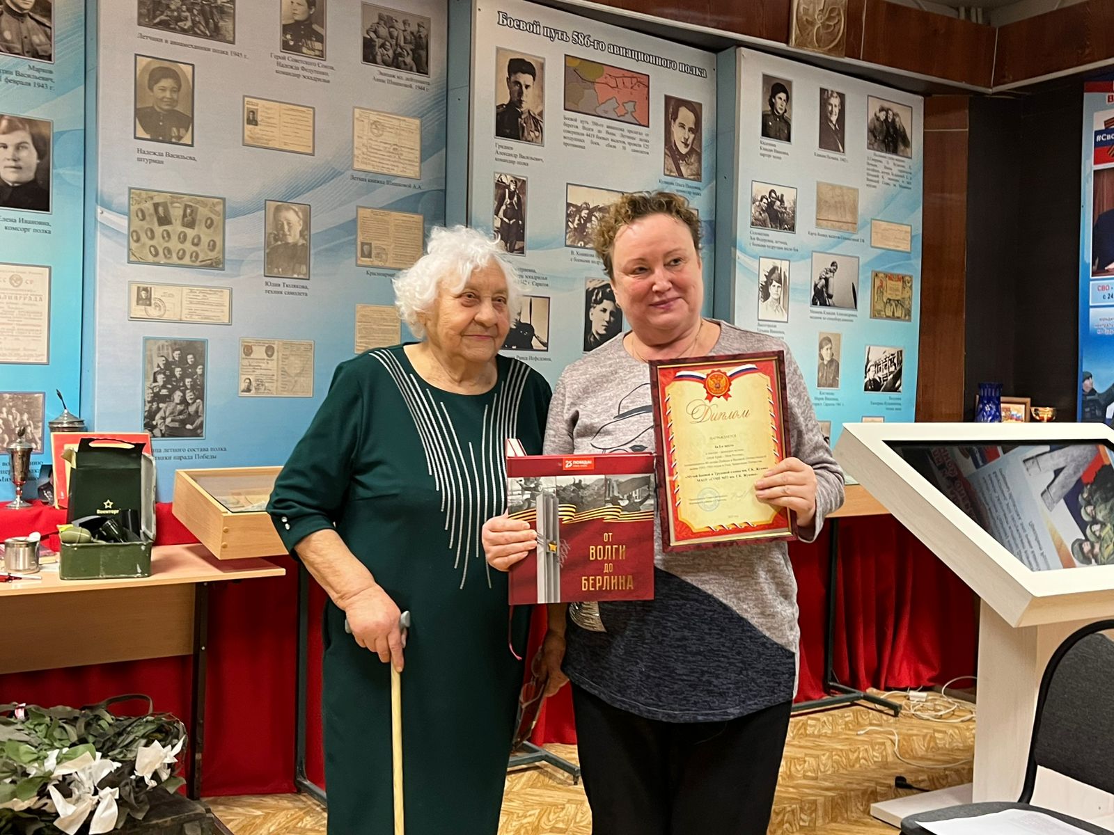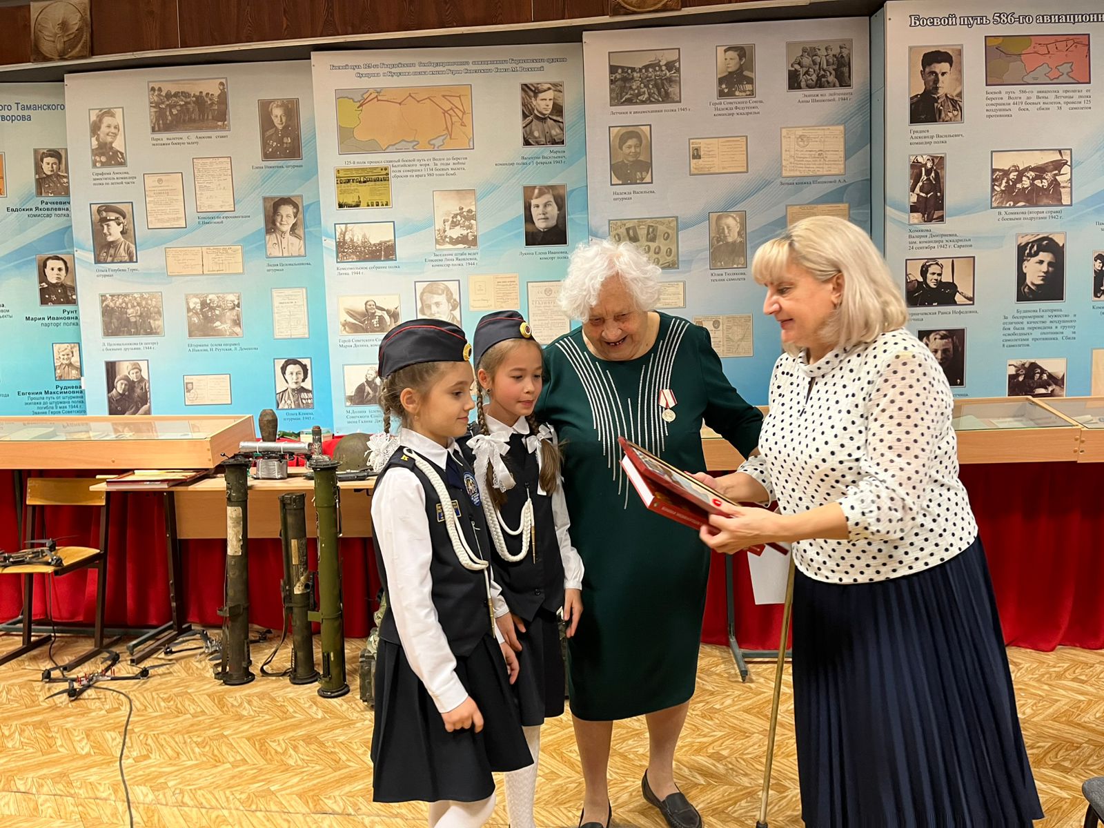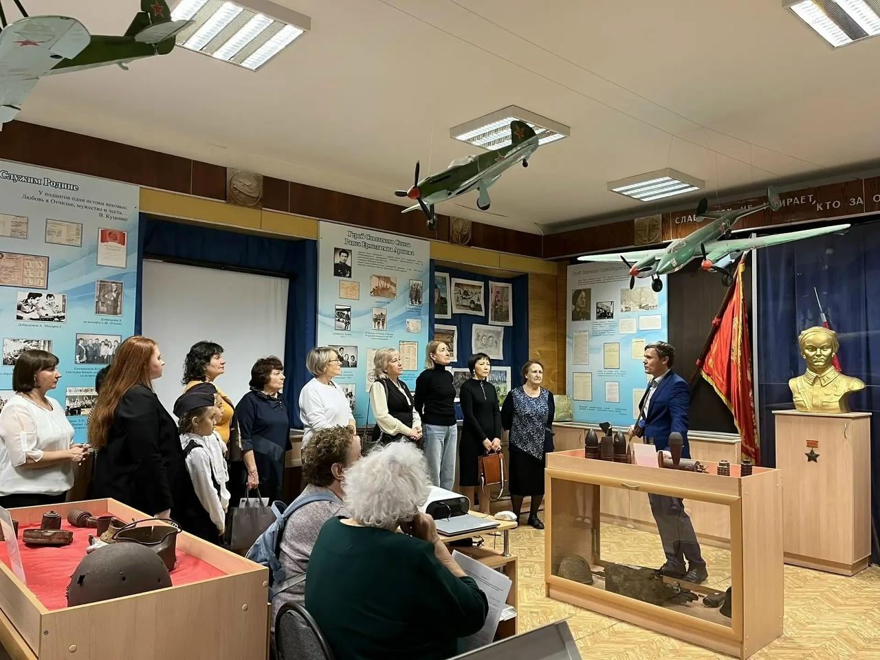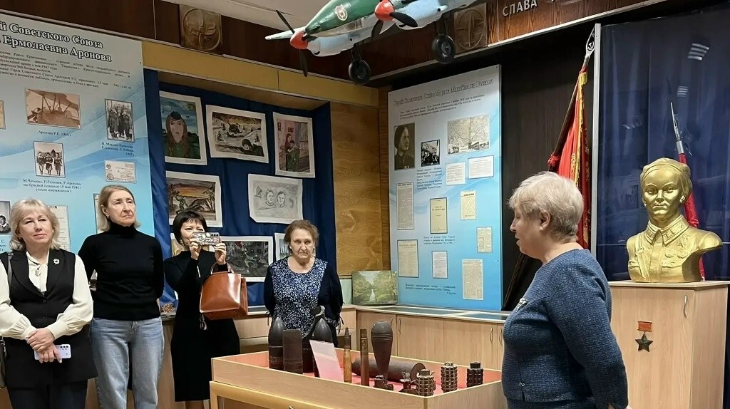 Также он рассказал о самих героинях женских авиаполков, отмечая вклад Героя Советского Союза М.М. Расковой в их создание, а также он показал отдельные экспонаты из коллекции, привезённые в дар музею участниками специальной военной операции.