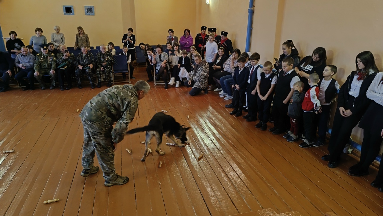 Кульминационной частью мероприятия стала встреча с необычной гостьей — овчаркой Флорой, которая продемонстрировала свои навыки выполнения команд. Школьники также имели возможность примерить настоящую военную форму.
