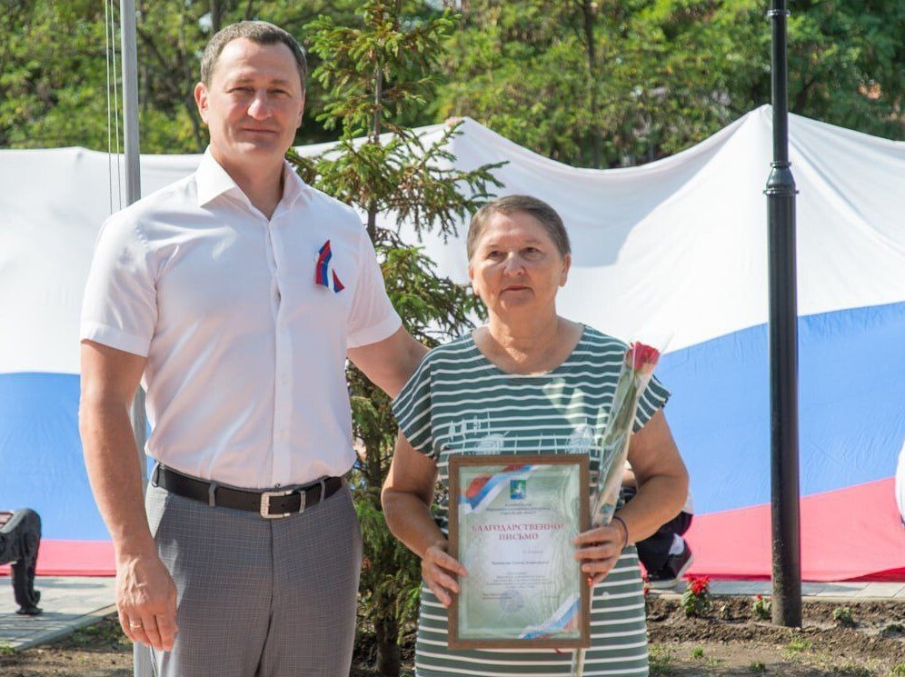 Почётное право предоставили председателю Совета районной ветеранской организации Олегу Боровикову и неоднократному победителю всероссийских олимпиад по различным дисциплинам, участнику волонтёрской группы, ученику СШ №6 Руслану Кумарову.