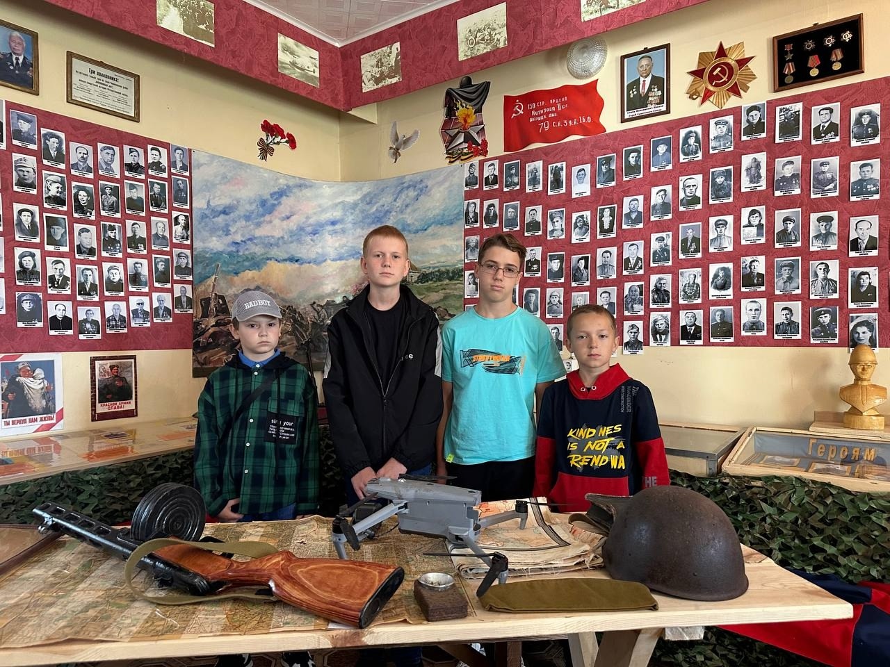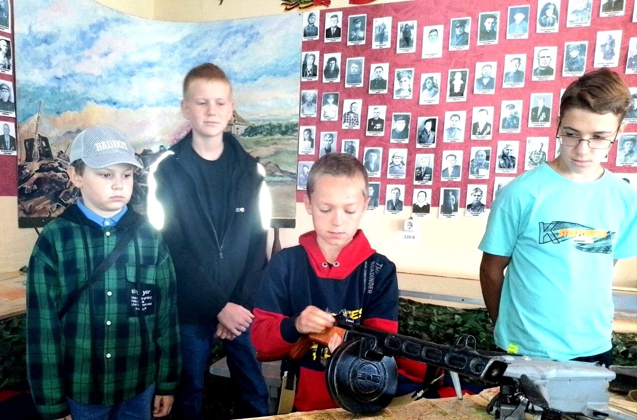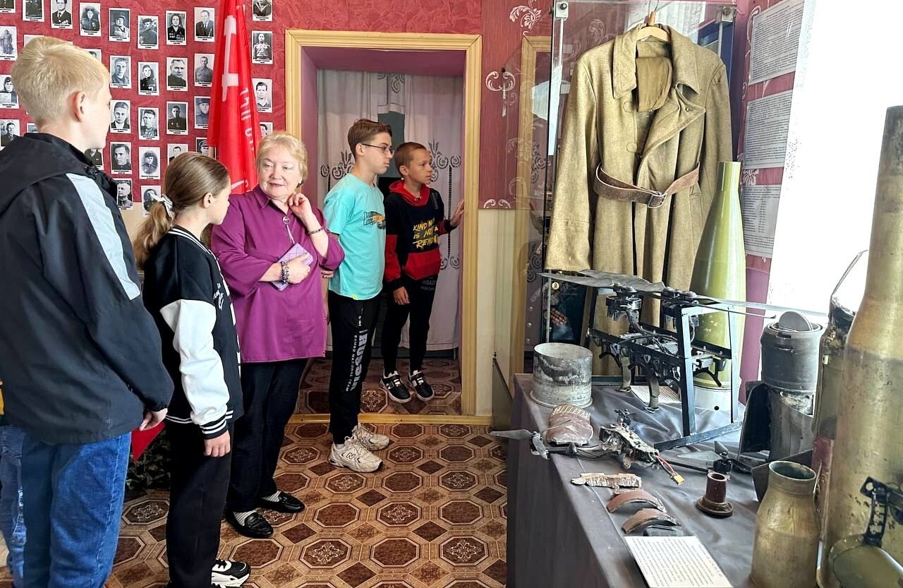 Сотрудник музея Елена Михайловна Андреева провела с детьми беседу о героях специальной военной операции на Украине, показала имеющиеся экспонаты.