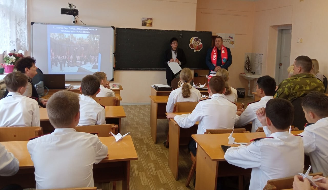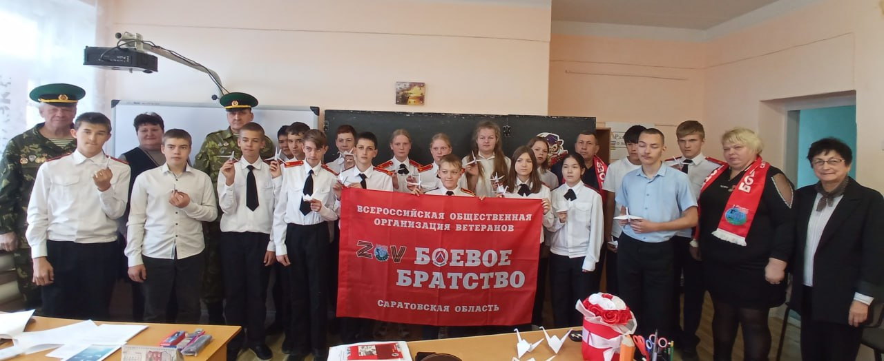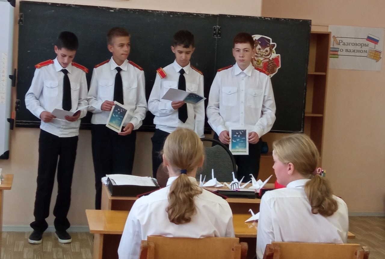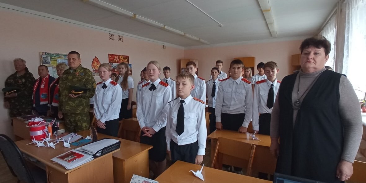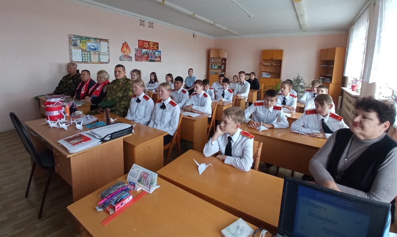 В корпусе №2 средней общеобразовательной школы №1 им. З.К. Пряхиной р.п. Мокроус прошёл трогательный Урок Мужества, приуроченный к замечательной дате — Дню Белых Журавлей с восьмиклассниками кадетского класса.