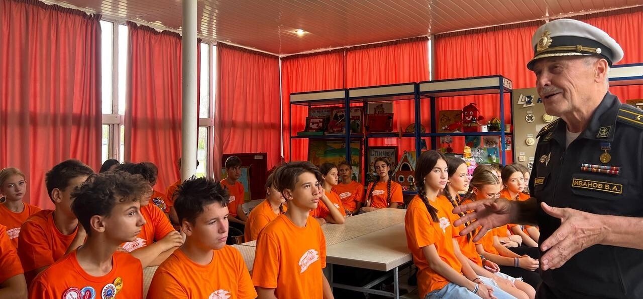 Заместитель председателя Саратовской областной организации ветеранов, председатель Саратовского Морского собрания, капитан 3 ранга в отставке В.А. Иванов провёл Урок мужества с учащимися школ города Саратова и Саратовской области, отдыхающими в оздоровительном учреждении, который посвятил истории Военно-морского флота России.